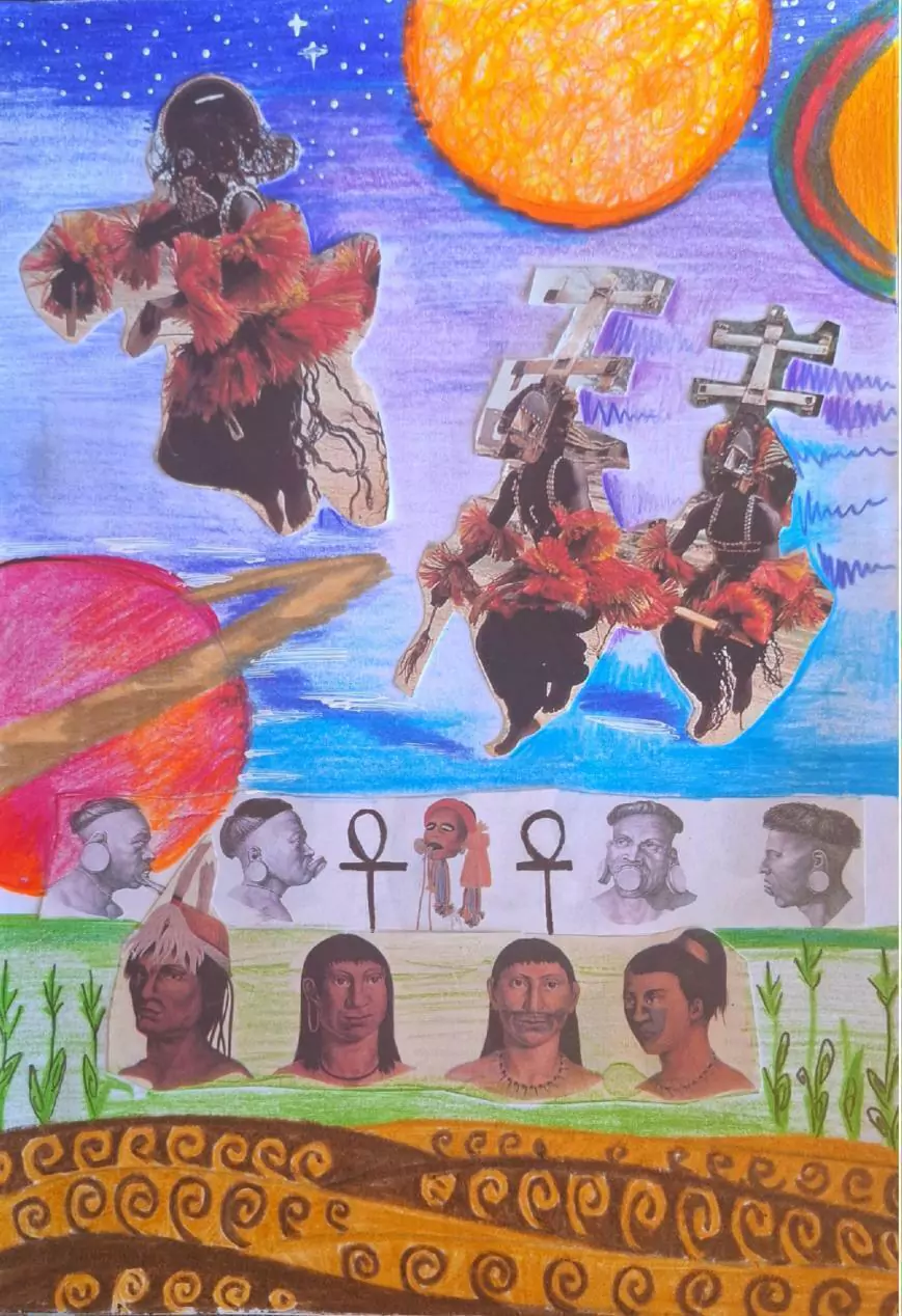 Obra criada pela talentosa artista Ayatha, que homenageia o povo Dogon do Mali e a conexão ancestral com os indígenas brasileiros. Esta obra vibrante traz uma unificação entre África e Brasil, apresentando colagens e cores cativantes que enriquecem qualquer espaço.